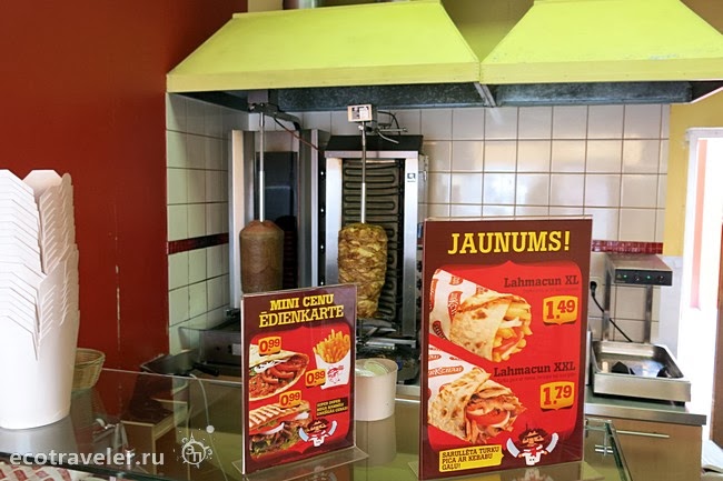 В нишу недорогих точек питания Риги, можно с уверенностью включить так называемые кебабные. В нашем понимании, это точки специализирующиеся на продаже обычной шавермы (шаурмы) и зная как обстоит дело с качеством данного товара в России, у нас нет особого доверия к таким заведениям. Но только не в Риге.