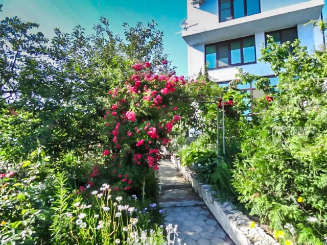 Особую радость гостям дарит красивый ухоженный сад с черешней, вишней, абрикосом, сливой. В урожай все созревшие плоды гостям разрешается срывать прямо с дерева, есть или варить компот. Большой благоустроенный зелёный двор для спокойного семейного отдыха, отдельной площадкой для мангала и детским уголком. Проблемы с водоснабжением отсутствуют.