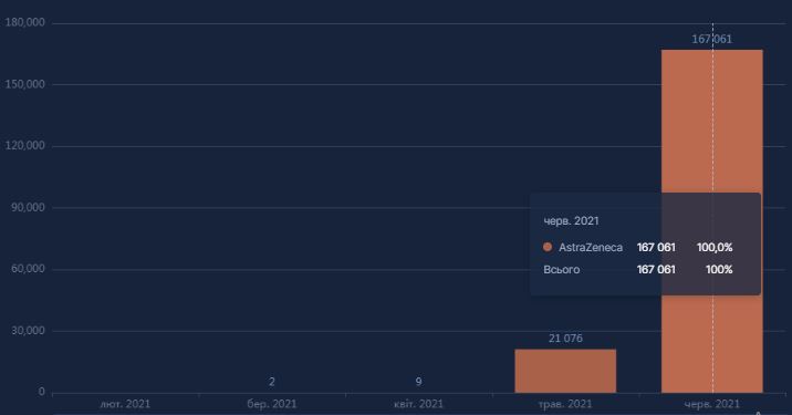 По состоянию на 18 июня двумя дозами "АстраЗенеки" привились 188 137 украинцев.