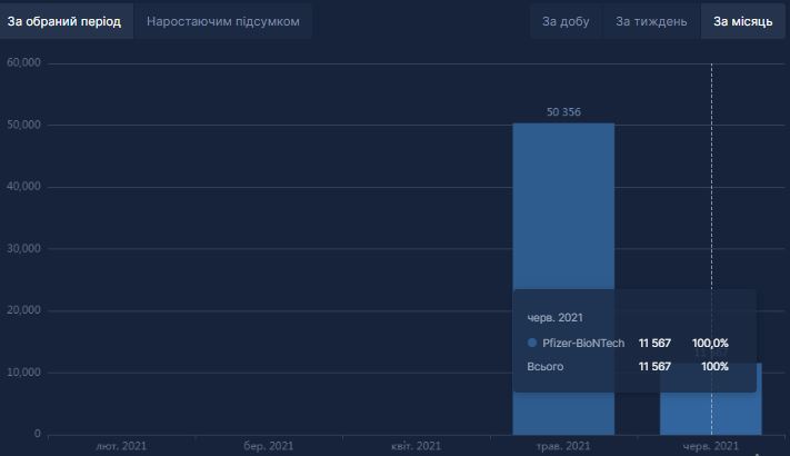Количество полностью вакцинированных "Пфайзером" украинцев. Данные сайта СНБО