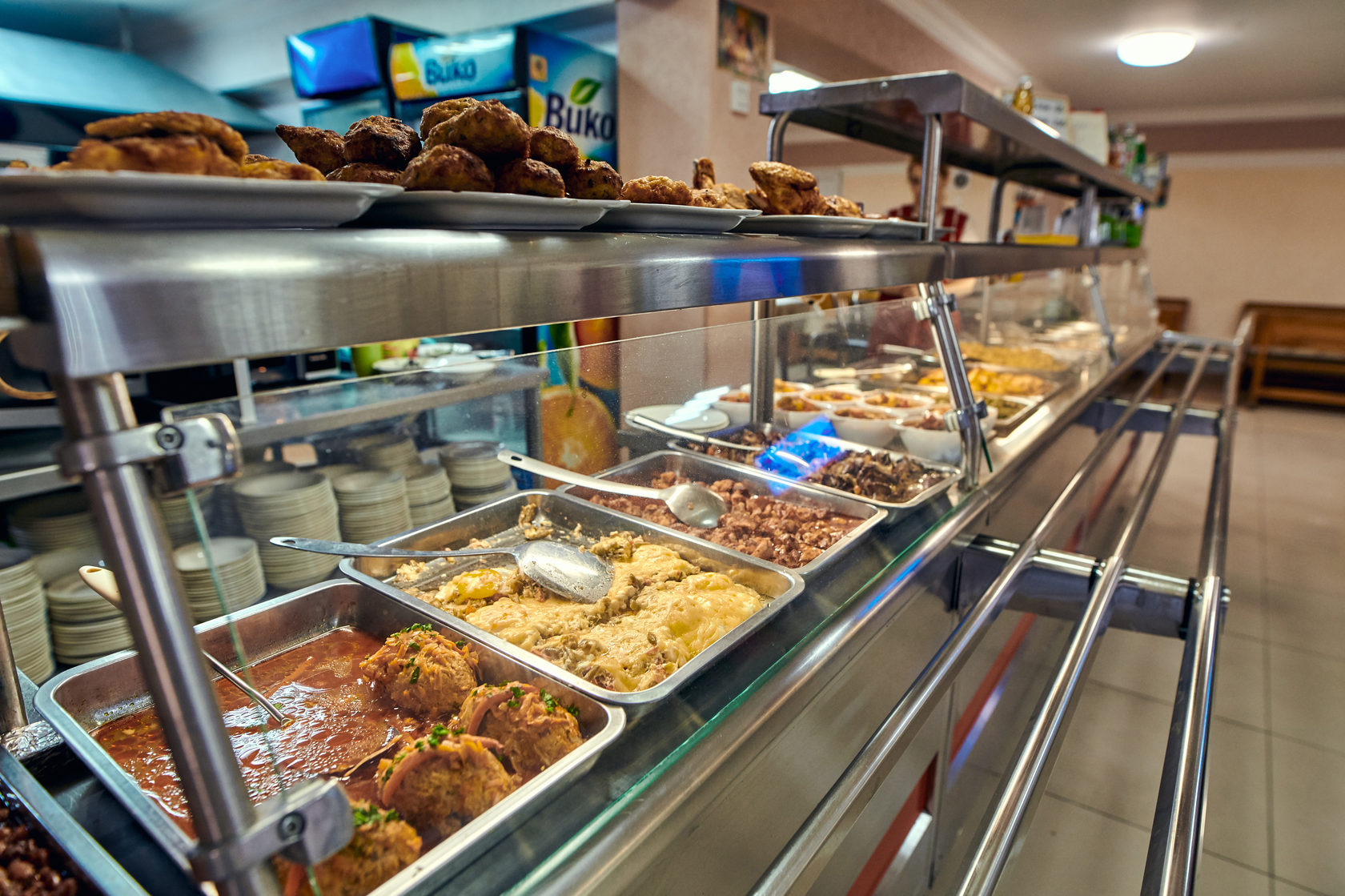 Питание не входит в стоимость проживания, однако на первом этаже «Глобуса» работает столовая, которая готова обеспечить гостей отеля вкусно и качественно приготовленными и при этом недорогими комплексными завтраками, обедами и ужинам.