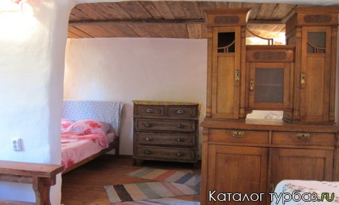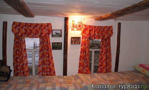 Турчинский дом. Двухкомнатный домик, рассчитанный на двух хозяев, или на компанию из 8 человек. В доме оборудован санузел с душем (горячая и холодная вода круглосуточно, система теплых полов). Предоставляются обогреватели. В доме: 2-спальная кровать, широкие лавки, на которых могут спать 2 человека, стол, шкаф.