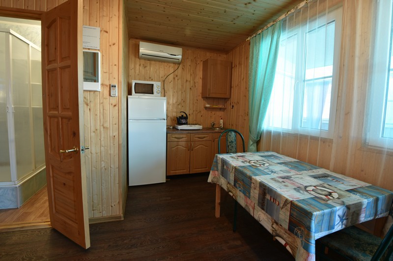 В каждом номере кухня, санузел с душем, сплит-система, спутниковое телевидение. На первом этаже домика есть веранда на открытом воздухе, которая весь день находится в тени. Работает Wi-Fi.