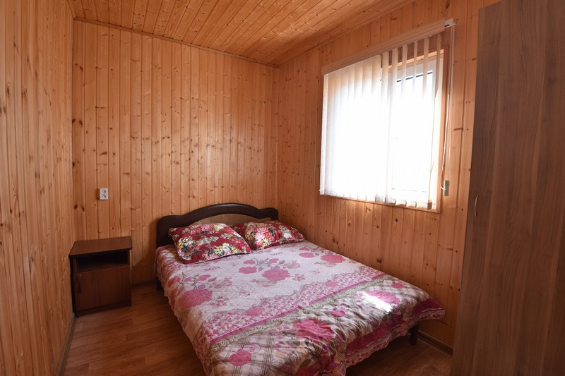 Домик состоит из двух этажей. На каждом этаже есть веранда-кухня-столовая, туалет и душевая. На первом этаже две спальные комнаты (4 спальных места: 2+2), на втором этаже их три (7 спальных мест: 3+2+2). Домик может сдаваться по этажам и весь под ключ.