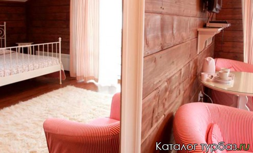 Шале 5 типа: гостиная, спальня, холодильник, посуда, чайник, TV, dvd-плеер, 2-спальная кровать, мягкая мебель, туалетная комната в ванной.