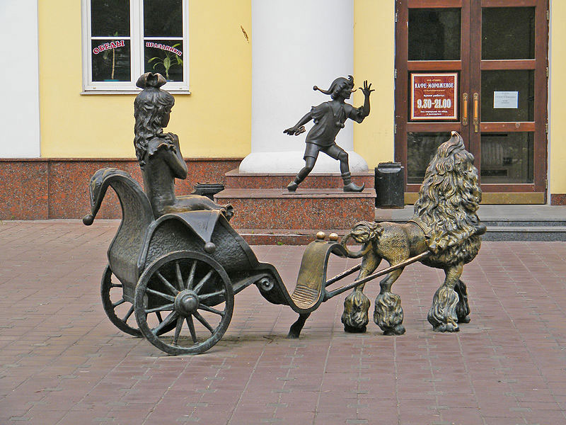 У сквера имени советского дипломата Андрея Громыко, который по старой памяти называют Пионерским, сделайте крюк к кукольному театру. Здесь бронзовый Артемон везет в карете Мальвину, рядом кривляется Буратино и хмурится Карабас-Барабас. Если подгадаете время, услышите, как часы на здании театра играют детскую песенку из советского кинофильма «Электроник»: «Бьют часы на старой башне, провожая день вчерашний».