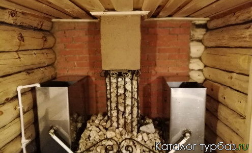 За порцией здоровья, бодрости и в удовольствие можно отправится в большую русскую баню, которая вместит в себя до 6 гостей, во дворе перед баней установлен деревянный стол со стульями-пеньками.