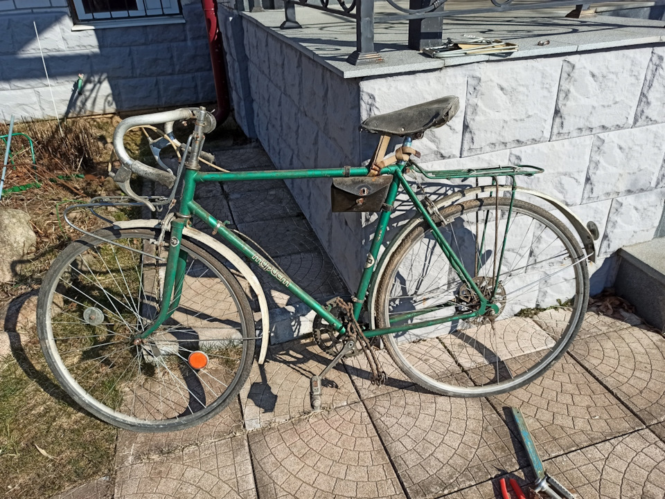 Сильно вдохновившись темами на данном сайте, решил что должен во что бы то не стало, раздобыть харьковский туристический велосипед, в итоге при помощи тернистого пути поиска велосипедов данного семейства, мне в руки попал вот такой вот почти комплектный Турист 153-451 (При покупки не было переднего багажника, что меня не сильно расстроило)