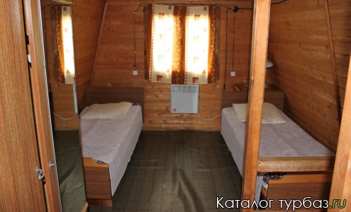 Размещение:Летние 2 -х этажные деревянные 5-ти местные домики. Отопление - радиаторы на каждом этаже. На 1 этаже - 3-х местный номер, на 2 - 2-х местный номер. Туалет - отдельно стоящее здание.