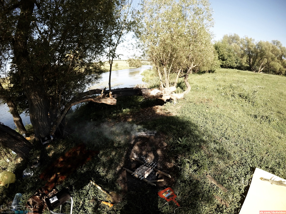 Здесь мы оказались только под вечер, почти уже стемнело, когда мы начали ставить палатку. Здесь два варианта, где ночевать: на самом городище, которое представляет собой холм или у реки внизу. Мы выбрали первый вариант.
