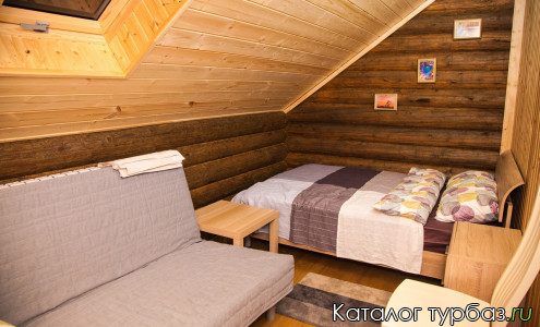 На втором этаже расположены две спальных комнаты (в каждой комнате двуспальная кровать и раскладной двухместный диван). Предоставляется постельное белье.