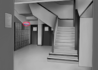 Идем на лестничную клетку - конверт с заданиями будет на шкафчиках. Нажимаем на них и
