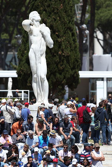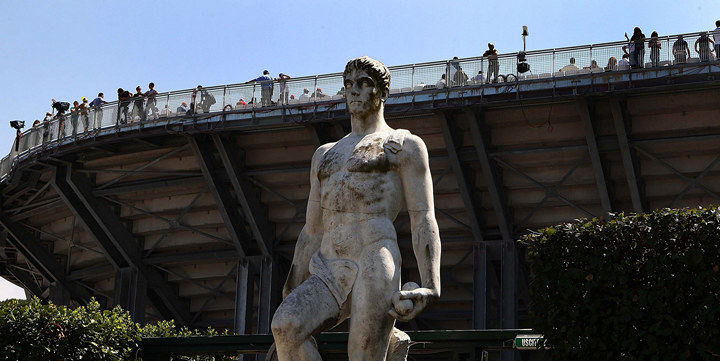 Одной из самых примечательных деталей, о которой каждый год пишут посетители турнира в Риме – это окружающие корты величественные статуи атлетов в античном стиле. Зрелище по-настоящему потрясающее.
