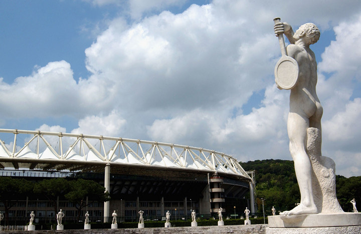 Вокруг Мраморного стадиона установлены 60 псевдоантичных скульптур спортсменов, в 1930-х подаренных Форуму итальянскими провинциями: теннисисты из Пармы и Рагузы, боксер из Кьети, прыгун в воду из Полы, гимнаст из Милана, лыжник из Больцано. Еще несколько статуй стоят на корте имени Николы Пьетранжели – некогда центральной арене теннисного комплекса «Форо Италико». Названа она в честь лучшего теннисиста в истории страны – двукратного чемпиона «Ролан Гаррос» до Открытой эры (по легенде, под конец карьеры в Риме на закрытой жеребьевке выбирал себе соперников). В южной части комплекса находится сейчас заброшенное здание академии фехтования, спроектированное легендой итальянской архитектуры Луиджи Моретти, – общепризнанная жемчужина модернизма.