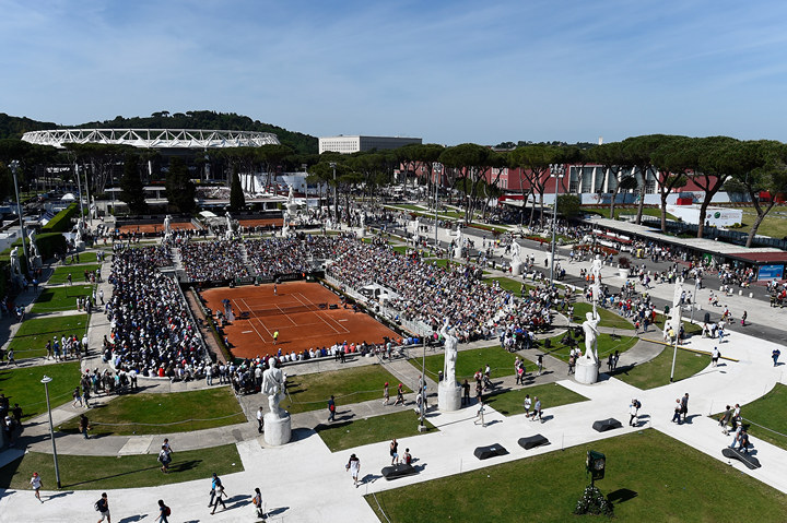 Спортивный комплекс «Форо Италико», почти 70 лет принимающий крупнейший итальянский теннисный турнир, увидев однажды, забыть невозможно. Раскинувшийся на берегу Тибра у самого высокого римского холма Монте-Марио (его географическая долгота в Италии до 1960-х считалась нулевым меридианом), «Форо Италико» включает в себя не только теннисные площадки, но также Водный стадион, легкоатлетический Мраморный стадион и Олимпийский стадион, где играют футбольные «Рома» и «Лацио». Территорию комплекса украшают классические – но от этого не менее эффектные – римские маркеры: высокие пинии, мраморные статуи и мозаики в античном стиле.