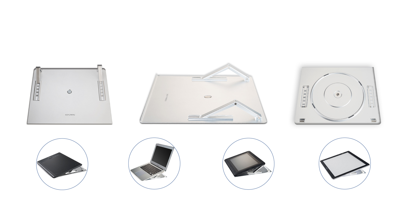 Мультифункциональная металлическая подставка XP-Pen, сделана из высококачественного алюминия марки 5052. Полированная и подвергнутая пескоструйной обработке подставка стала еще более легкой, стабильной, прочной и портативной.