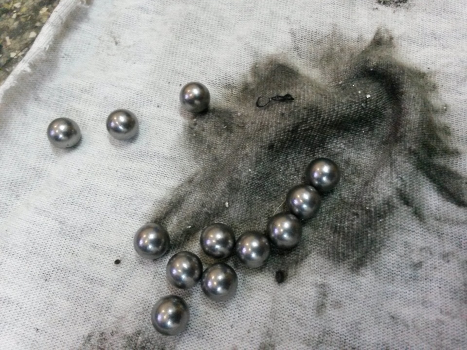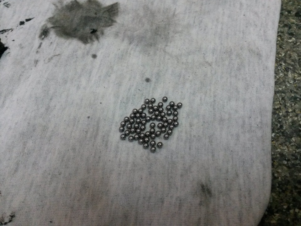 Вытащил шарики из втулки. Для очистки обернул в ткань и потер мешочек с шариками об руку: