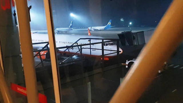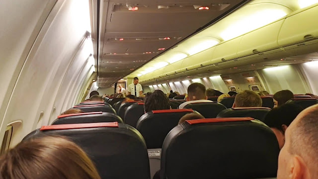 За чашкой капучино скоротали время до начала регистрации, после чего сдали багаж и далее все, как обычно: досмотр, паспортный контроль, зона дьюти-фри и вот, мы уже идем по трапу на посадку в самолет.