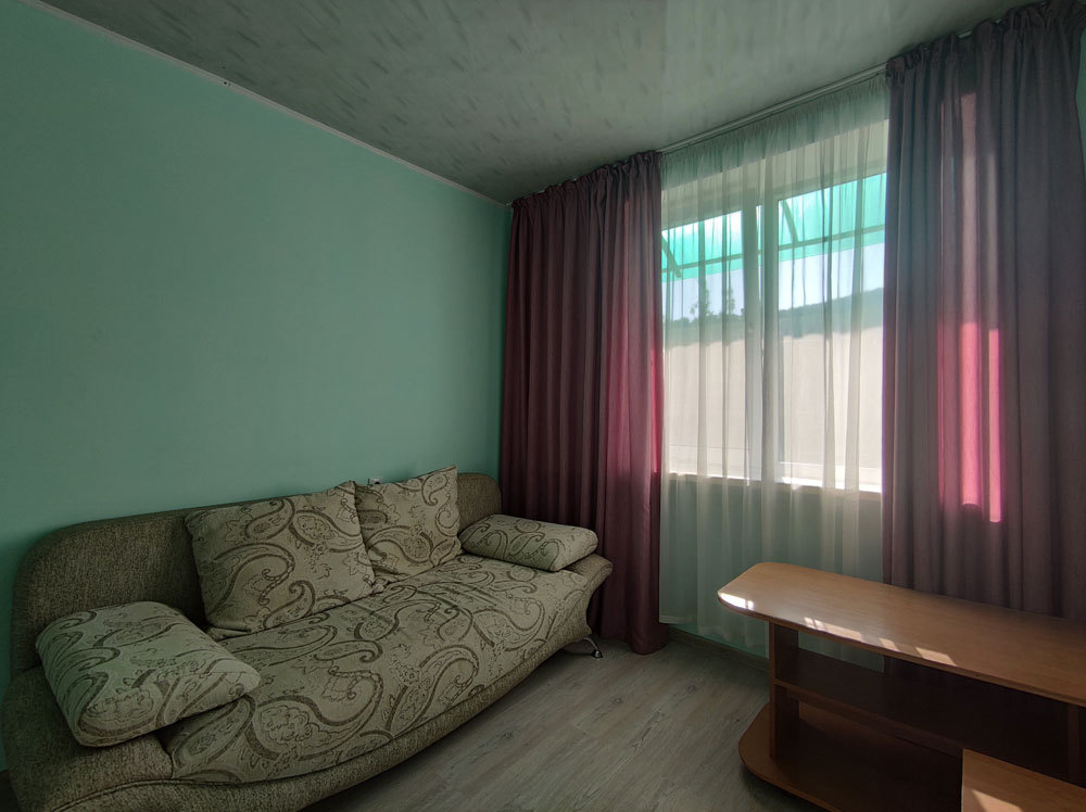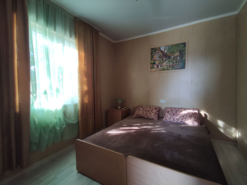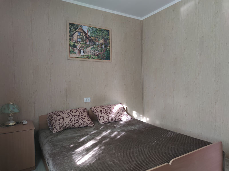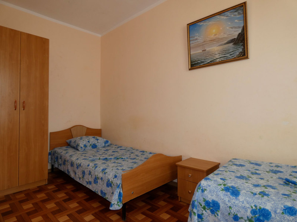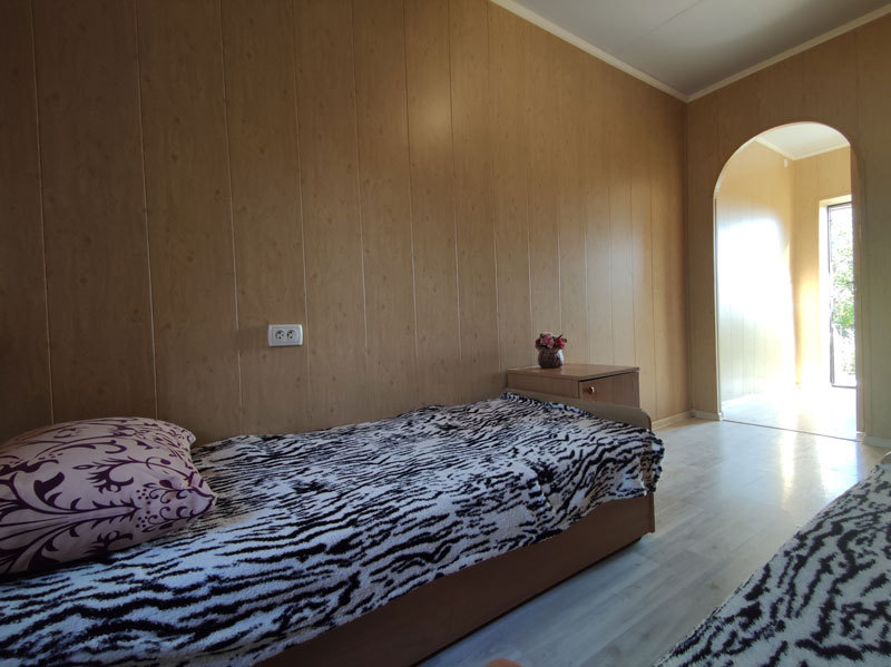 Номер расположен в коттедже № 6 . Расстояние до пляжа около 300 -350 метров. В комнате – три односпальные кровати, две из них составлены вместе или порознь и отдельно стоящая односпальная кровать . Номер укомплектован прикроватными тумбочками, столикам , кондиционером, TV, холодильником, минимальным набором столовой посуды. В номере есть санузел (душ, умывальник, туалет, горячая и холодная вода постоянно). Перед коттеджем расположены парковые качели и мангал. Видео номера, Вы можете посмотреть кликнув на превью видео расположенного ниже текста и блока фотографий.