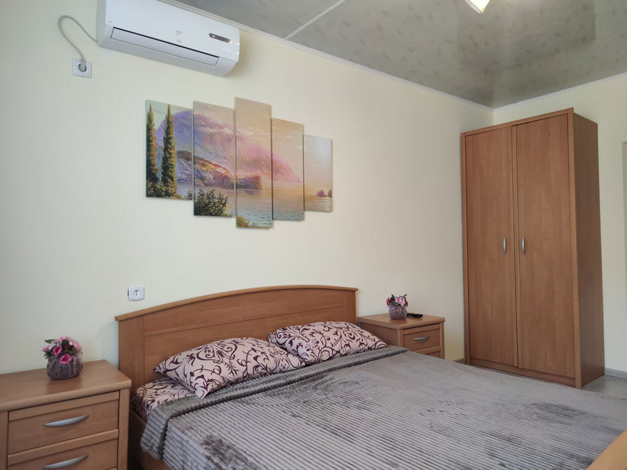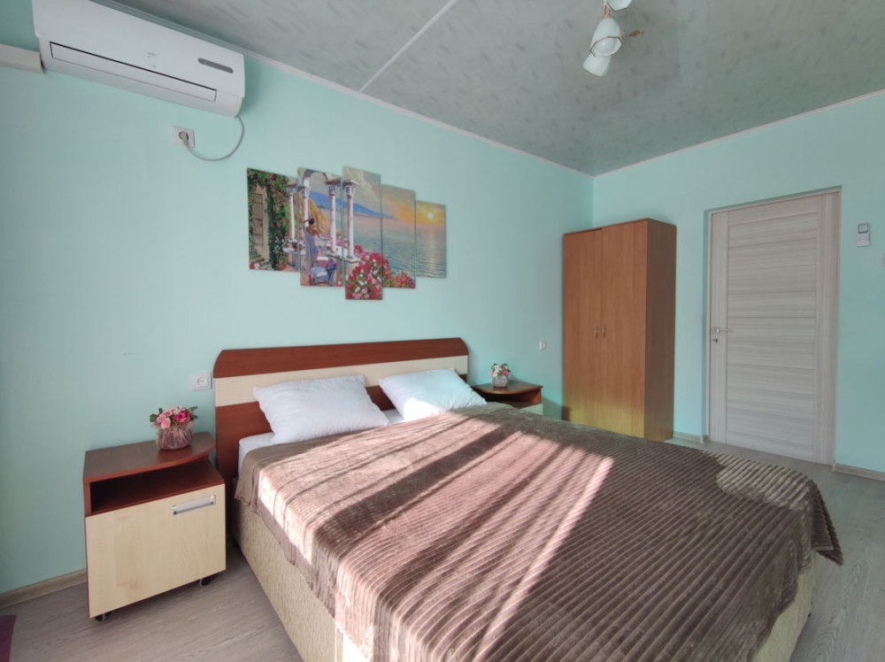 Удобства: двуспальная кровать, два раскладных дивана, ТВ, кондиционер, холодильник, кухня и имеется необходимый набор столовой и кухонной посуды.