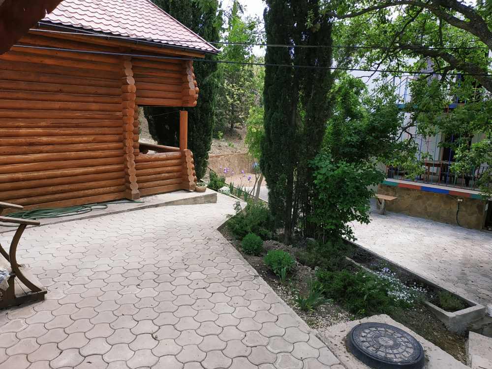 Двухкомнатный, пятихместный номер. Кухня расположена рядом с номером во дворе. Номера расположены в коттеджах №28 и № 29 . В спальне находится двуспальная кровать, прикроватные тумбы. В гостиной - два раскладных дивана, ТВ. Имеется минимальный набор столовой посуды. Растительность и большие деревья, создают тень практически весь световой день на площадке перед номером.