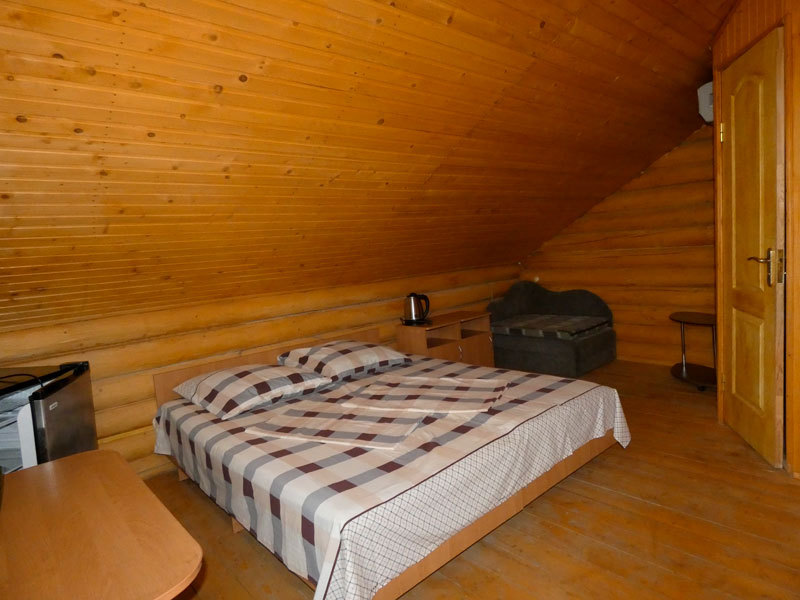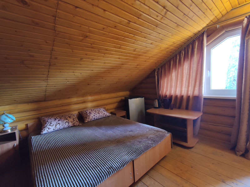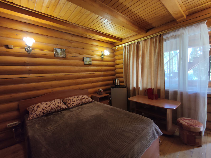 Номера расположены в коттеджах №12, 22, 23, 24, 25.30 Номера с отдельными входами, однокомнатные. В номере: либо две кровати, которые можно составлять вместе, или раздельно, либо двухспальная кровать; раздвижной, одноместный диван, шкаф, тумбочки, столик; душ, туалет, умывальник, г/х вода постоянно; кондиционер; TV; холодильник; электрочайник; минимальный набор столовой посуды. Возле каждого номера площадка для отдыха, беседка, качели, песочница, мангал.