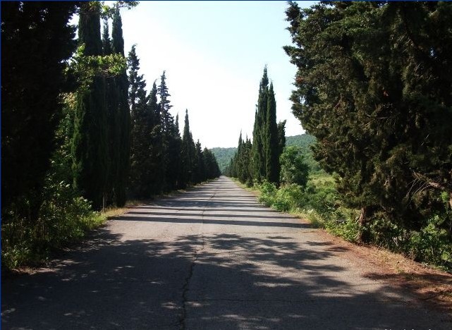 Вдоль пляжа протянулась аллея из итальянской сосны , на ветвях которой растут огромные шишки, похожие на кедровые. На аллее имеются столики, можно любоваться морем, сидя в тени аллеи.