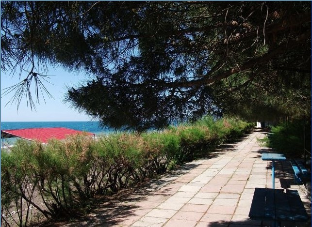 Пансионат, располагается в 70 метрах от моря, это расстояние Вы проходите по тенистой аллее кипарисов и цветов. Соседствует с государственным заповедником, в котором растут уникальные породы деревьев, дающие чистейший и полезный воздух. Это идеальное место для тех, у кого есть проблемы с дыхательными органами – бронхит, астма и т.д.