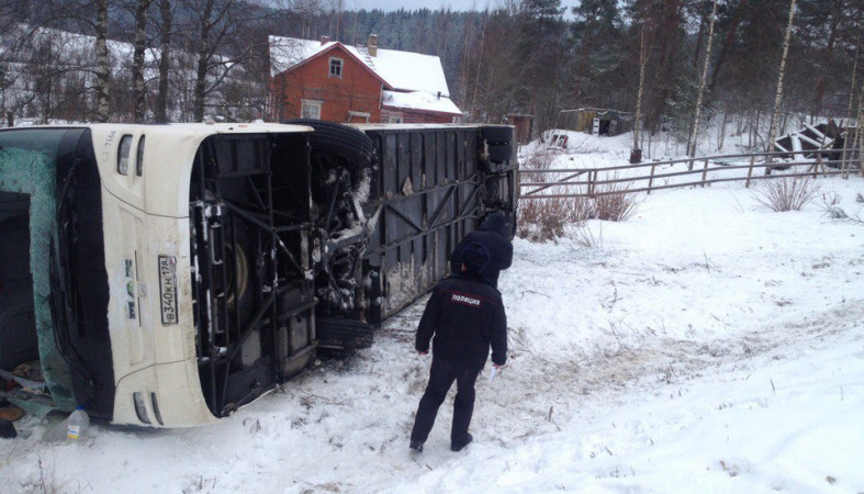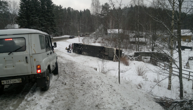 Автобус с туристами из Санкт-Петербурга опрокинулся в Карелии
