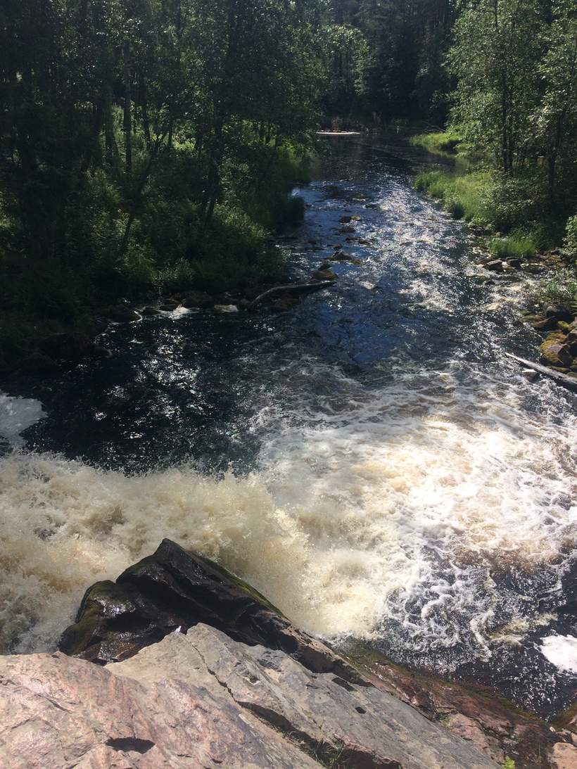 17-метровый красивый водопад, спрятанный в глуши. Самый высокий в Карелии. По отзывам, стоит ехать только на внедорожнике, особенно если были дожди. Однако кто-то рискует проехать и на легковых авто. Многие оставляют машины на стоянке, а дальше идут пешком 3 км. Мы не поехали — выбрали Койриноя.