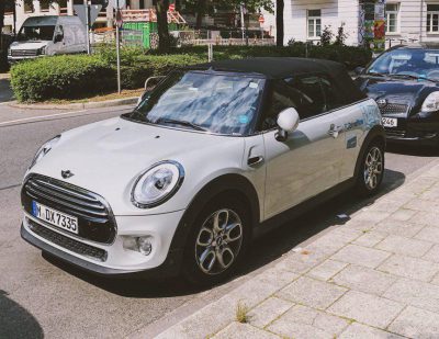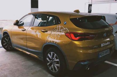 Первым пунктом, куда мы направлялись, был выставочный центр и музей BMW. Мы выбрали одну из ближайших к отелю машин. Это оказался MINI Convertible. Мы были неопытными и не знали о возможности ввести адрес в приложении, чтобы его закинуло в машину, и было довольно сложно найти на немецком, куда что и как вводить. Припарковавшись на ближайшей к музею зоне парковки и дойдя до него, мы узнали, что для DriveNow организованы специальные парковки на улице и подземной парковке музея/выставочного центра.