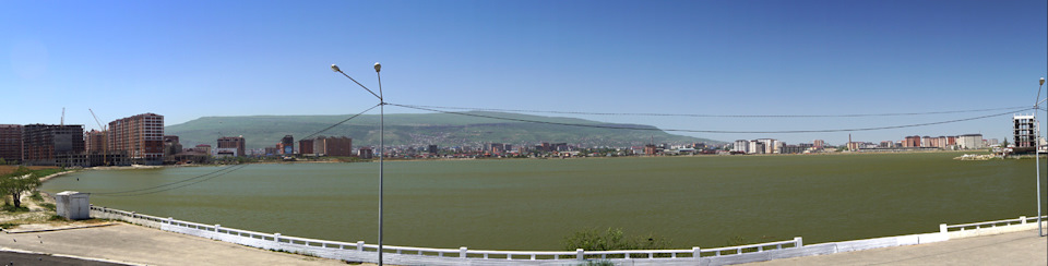 Ну, и где тут самый главный променад? Если смотреть на карту, то сомнений не остаётся – должно быть Ак-Гёль. Это небольшое озерцо прямо в центре Махачкалы, отделённое от Каспийского моря песчаной косой, но имеющее с ним подземную связь.
