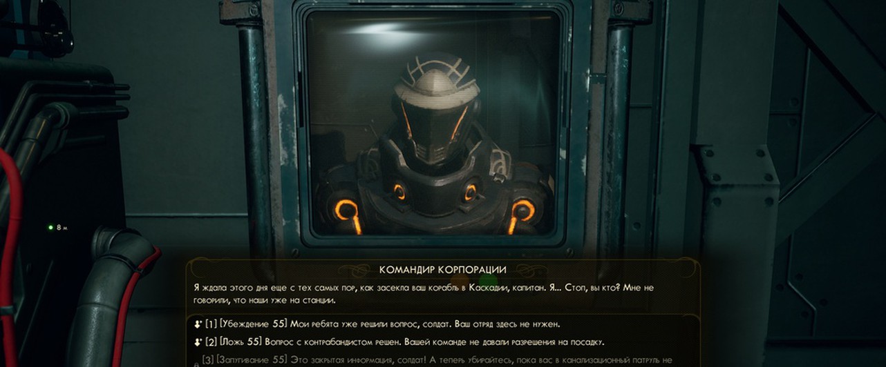 Теперь идите за квестовой меткой и восстановите энергоснабжение станции. После того, как вы закроете терминал, с вами на связь выйдет АДА. Чтобы договориться с командиром корпорации, вам понадобится высокий навык убеждения, лжи или запугивания. Если проверку навыков вы не пройдете - появится вариант с подкупом.