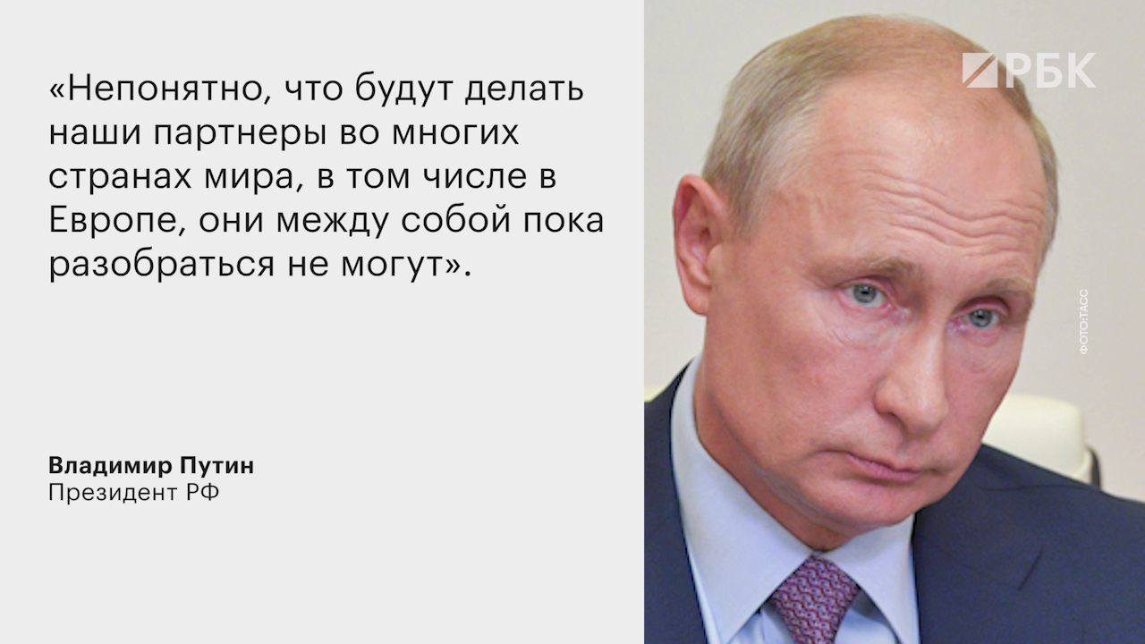 «Непонятно, что будут делать наши партнеры во многих странах мира, в том числе в Европе, они между собой пока разобраться не могут. И не ясно, когда они будут открывать свои границы и территории для граждан третьих стран, в том числе для российских граждан, даже в период летних отпусков», — сказал президент.
