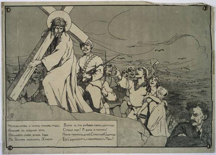 Таков же Петроград в описаниях А. Блока: заваленный снегом, который некому убирать, обезлюдевший город. И по пустым улицам топают вооруженные матросы, из которого в ужасе убегает Христос[34].