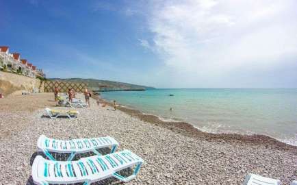 Пляж Двуякорной бухты - просторный, с широкой береговой линией, уютно расположен и закрыт с обеих сторон горами и холмами, и хотя сам пляж галечный, его прибрежная полоса и само дно – пологое и песчаное, что идеально подойдет для отдыха с маленькими детьми. Шезлонги и комплект полотенец для каждого гостя в достаточном количестве входят в стоимость размещения. Комфортный отдых гостей - наш приоритет, поэтому прибрежная территория всегда поддерживается в чистоте и порядке!