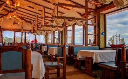 - кафе. Собственное кафе гостиницы отличается приятным морским стилем. Помещение оснащено большими окнами с видом на море. Общая вместительность зала – 70 человек. Столы рассчитаны на размещение четырех посетителей. Зал оснащен удобной мебелью с мягкими сидениями. Для комфорта гостей в кафе работает кондиционер и Wi-Fi.