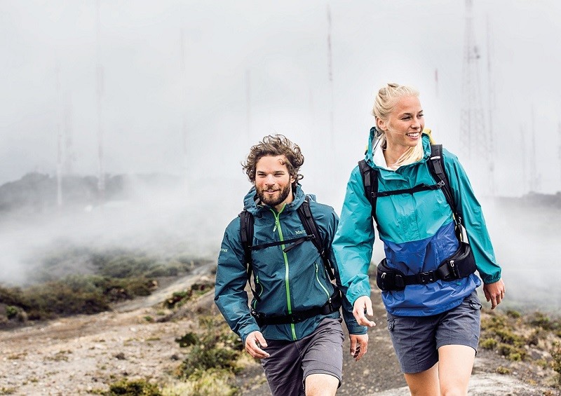 Обращайте внимание, чтобы верхняя куртка закрывала поясницу, имела капюшон и высокий воротник. Таким образом обеспечивается не только защита от дождя, но и от пронизывающего ветра. Обращайте внимание на показатели мембраны. Если вам предстоит спокойный поход, но ожидается пасмурная погода, прежде всего смотрим на цифру влагонепроницаемости (от 10000 мм). Чем она выше, тем дольше можно в этой куртке находиться под дождём. Если же вам предстоит высокая активность, выбирайте куртки с показателем паропроводимости от 10000 г/м2/24 часа.