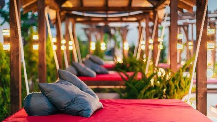 Развлекательная зона “Punto G”: ресторан “Tutto Bene” (летняя веранда), второй бар двухэтажный (круглосуточный), второй средний бассейн, малый бассейн, сцена с аппаратурой (для проведения небольших концертов), два гамака, три подвесные кровати.