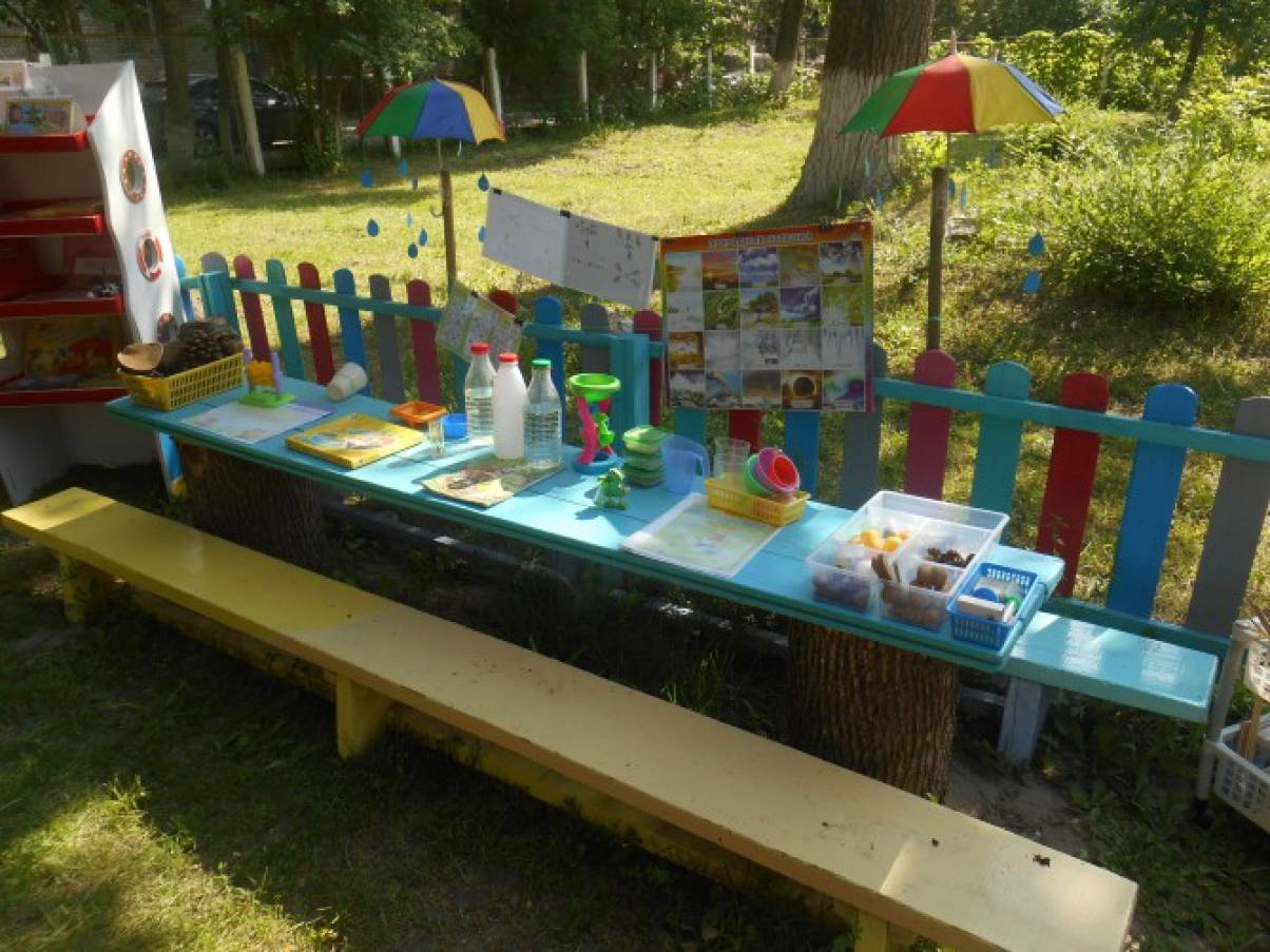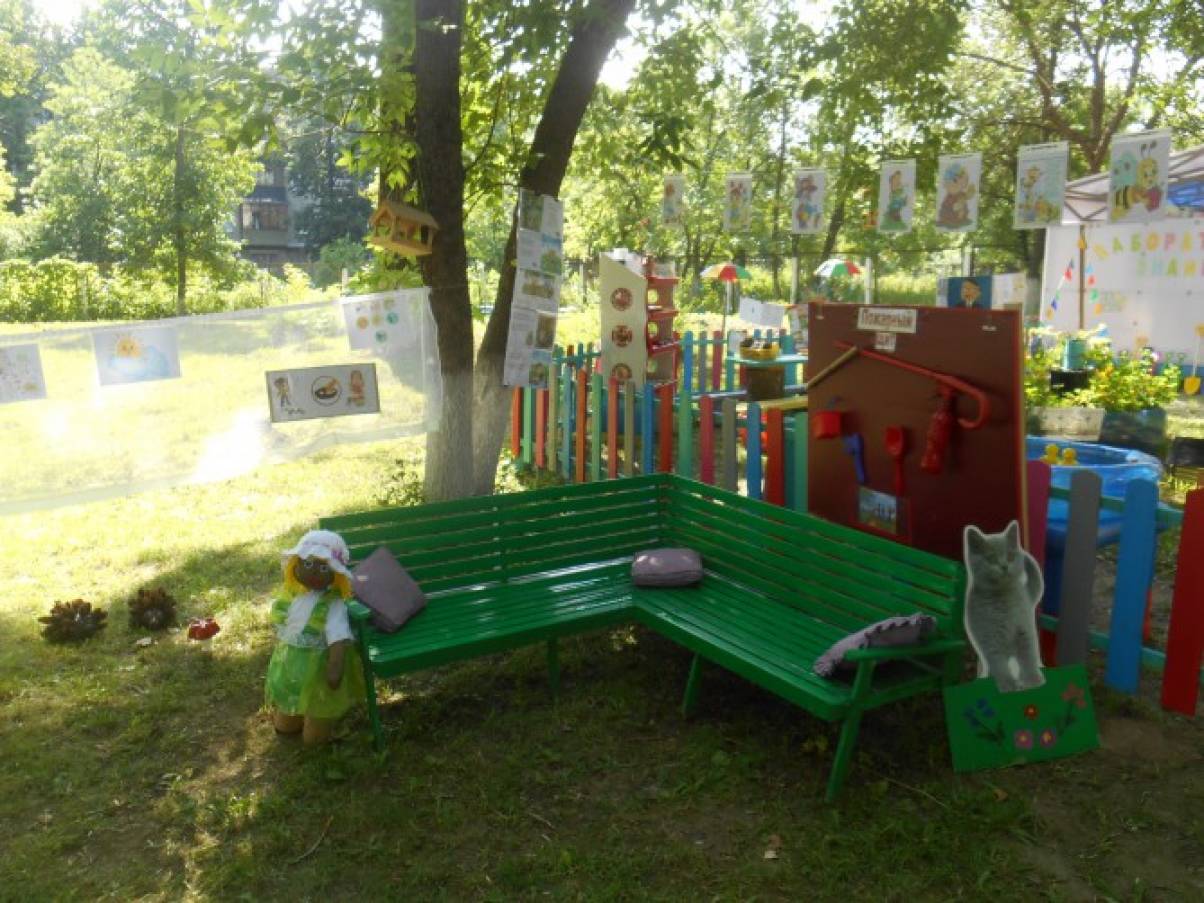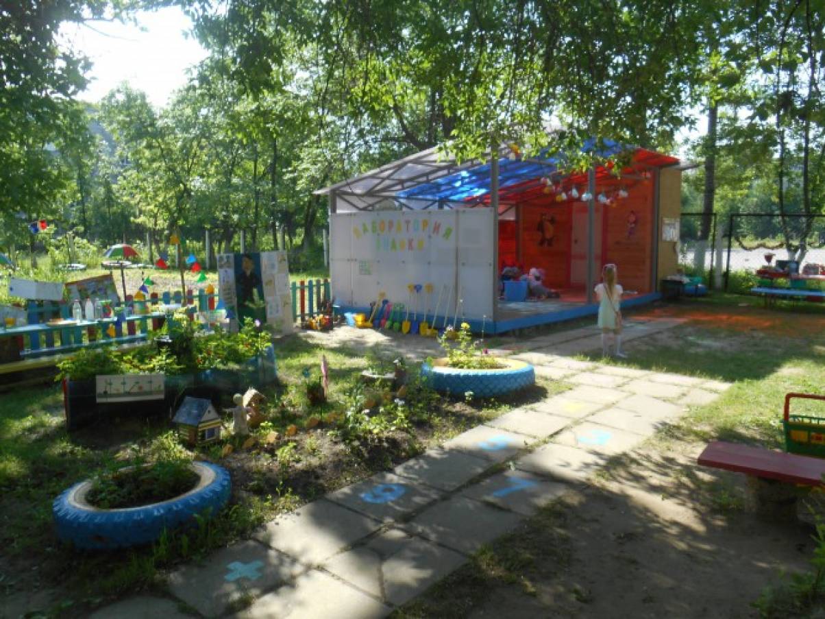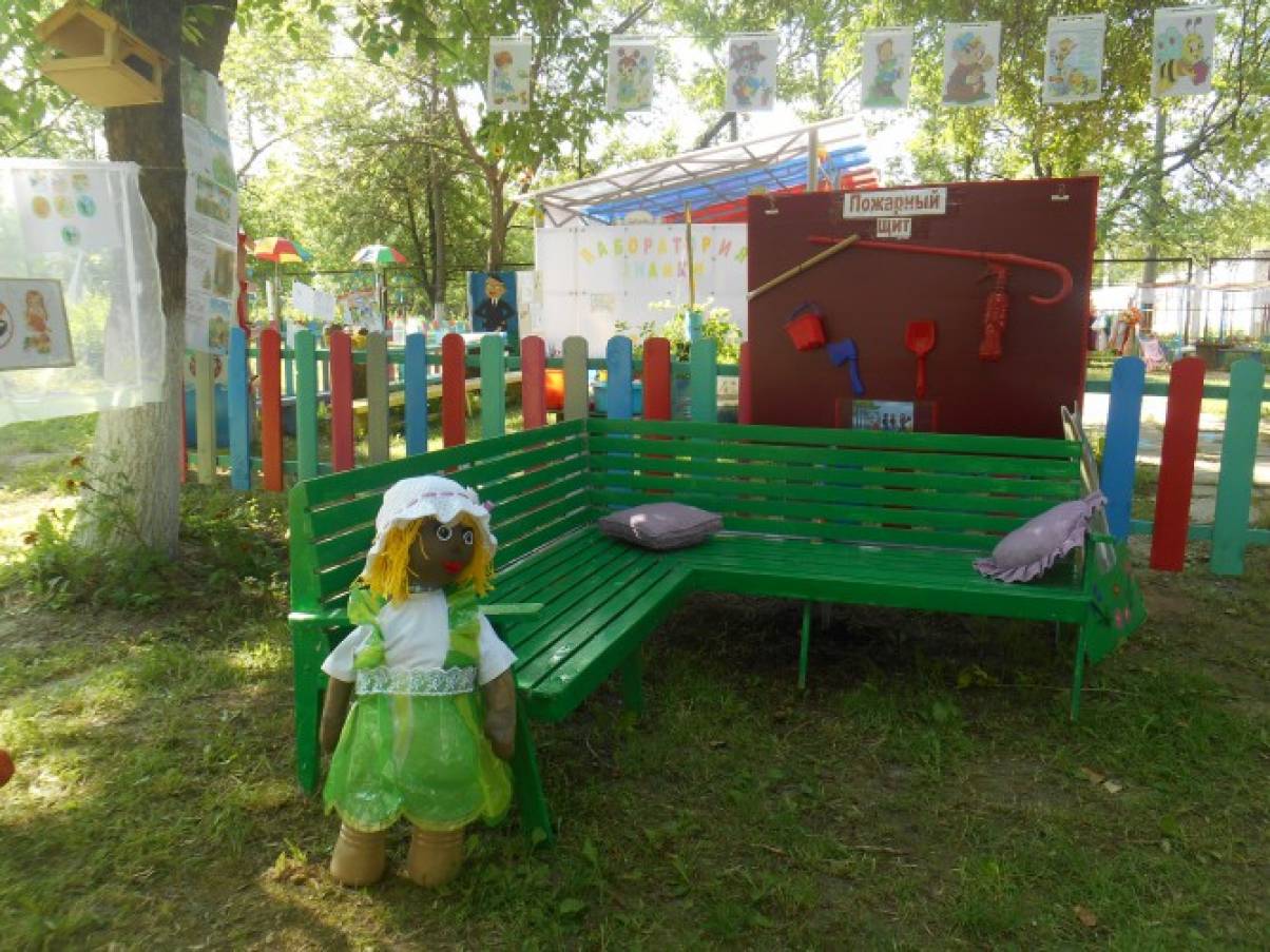 Лето - самое прекрасное время года для взрослых и детей. Ни все дети летом уезжают на дачи или на море отдохнуть. Посмотрите, как мы – воспитатели и родители постарались сделать для детей, что бы им было интересно в детском саду. Есть у нас уголок уединения. Лаборатория,где ребята проводят опыты, экспериментируют,играют в экологические игры,наблюдают, а за всем этим наблюдает Знайка. Зона отдыха,где ребята представляют,что они в лесу на пикнике: читают книги, слушают музыку, танцуют. Здесь для них есть вся информация о правилах поведения в лесу. Спортивная площадка, где они занимаются спортом. Детям очень нравиться ходить детский сад.