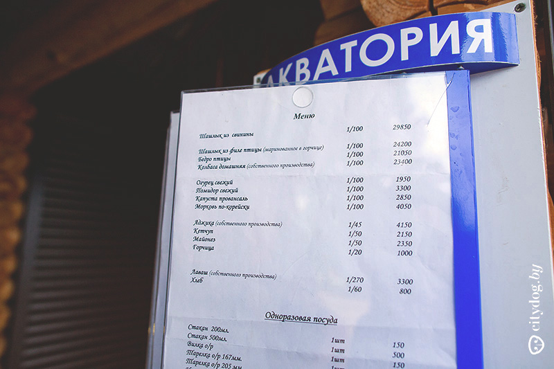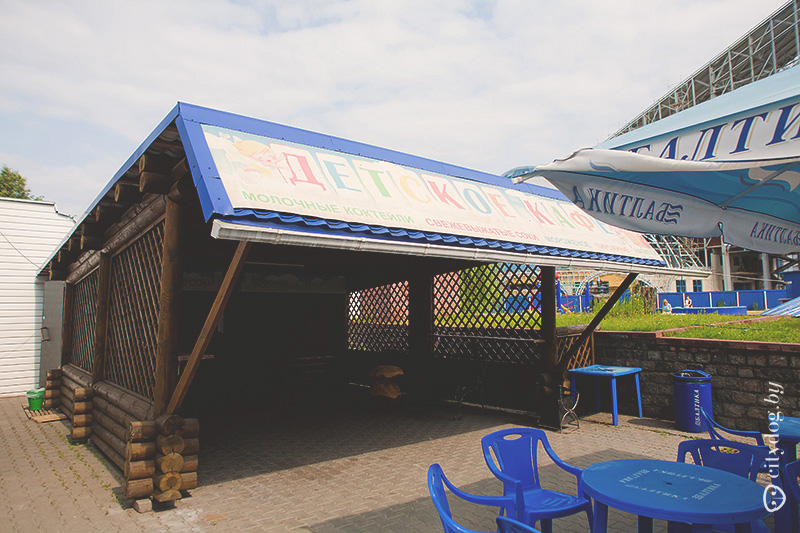 В новой зоне есть свой небольшой бар с напитками, шашлыками и мороженым, на общей же территории работают еще два кафе: одно с едой, другое детское – с мороженым и молочными коктейлями. Цены везде одинаковые: шашлык со свининой стоит 29 850 руб.,