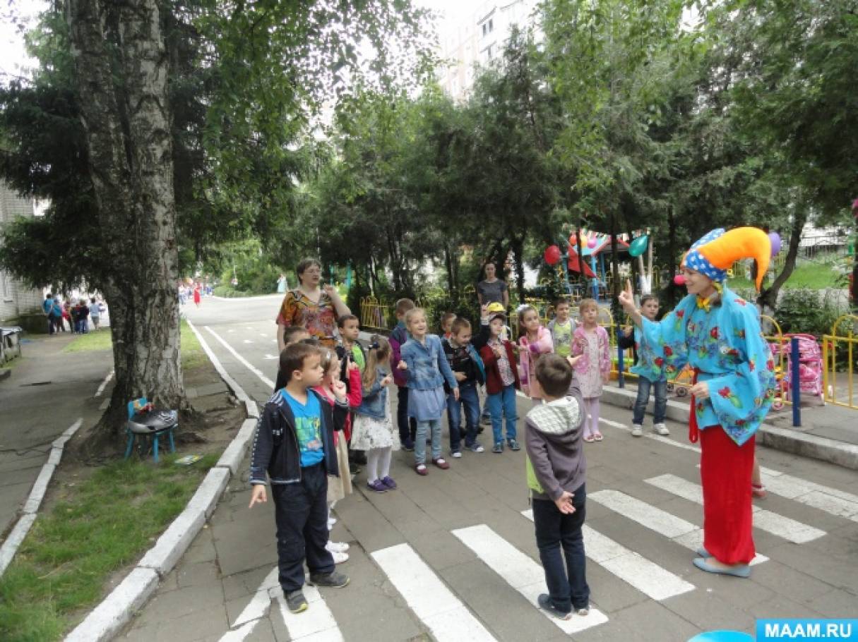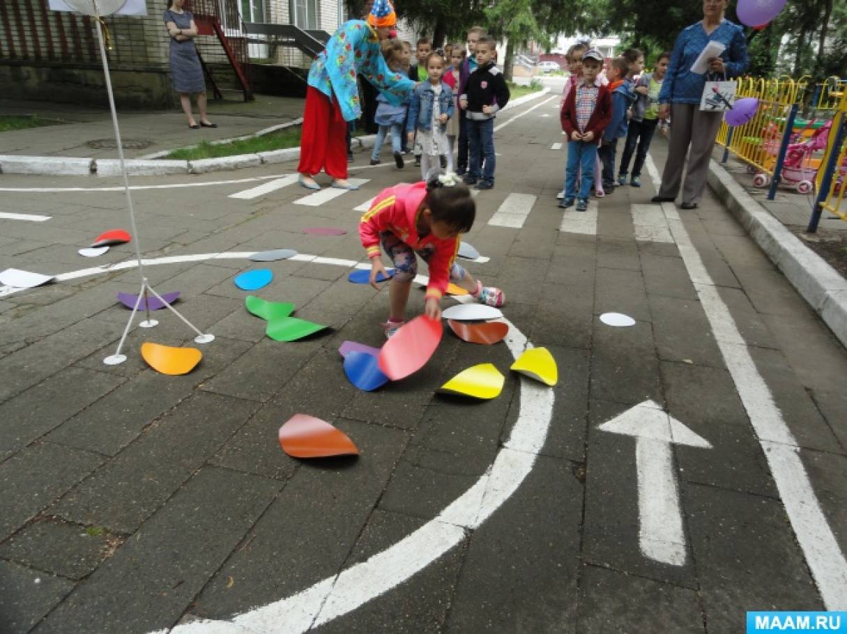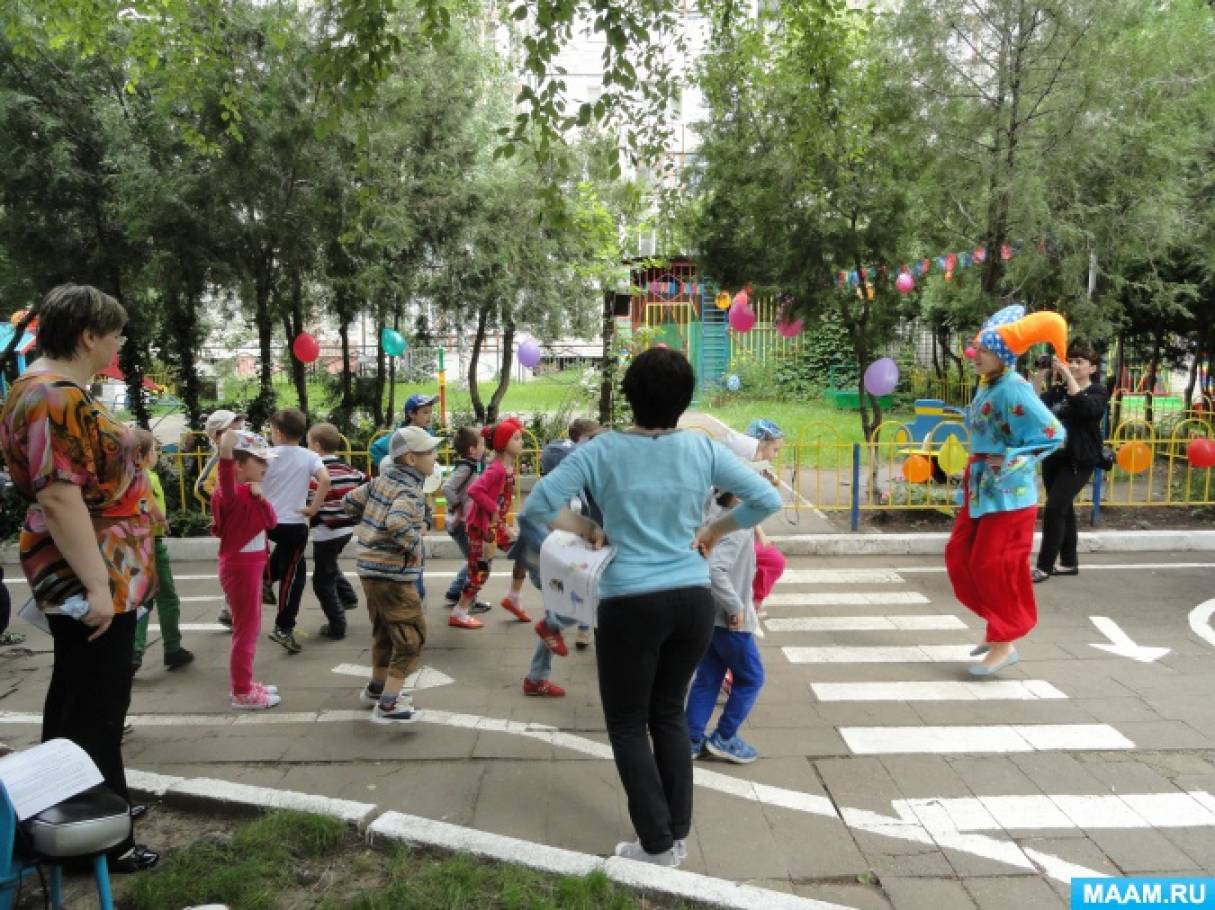 В летний период развлечения проводятся один раз в неделю в каждой возрастной группе. Поскольку в это время года максимально должна использоваться возможность пребывания детей на свежем воздухе, за исключением дождливой погоды, развлечения проводятся на улице. Но варианты проведения могут быть разные. Можно начать в зале, а затем пригласить детей на детскую площадку.