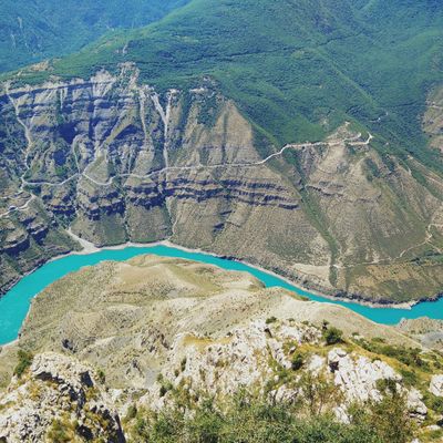 Вторая остановка, которую все и всегда ждут - Сулакский каньон. Опять же, следуя уже нашей хорошей традиции, мы не ограничимся обзорной площадкой, а прогуляемся вдоль каньона, насладимся видами без кафешек и столиков. Посетим обзорную площадку с видом на Чиркейскую ГЭС.