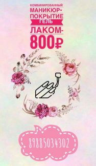 Снятие +Маникюр +Гель-лак +Выравнивание ногтевой пластины 1450 руб.