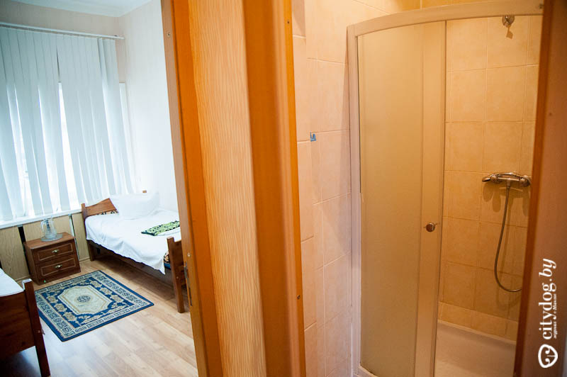 В комнаты отдыха можно пройти через второй этаж вокзала, по лестнице, которая прячется в углу бара. Но проще зайти с улицы: у гостиницы есть отдельный вход, справа от центрального входа в автовокзал.