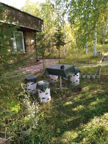 Имеются два дома для ночевки: семейный и гостевой. Две костровые зоны, две беседки, баня, душ и зоогостиница для питомцев гостей. Дома рассчитаны на 3-4 человека. Постельные принадлежности и белье выдаются. Рядом находятся зоопарк «Орто Дойду», аквапарк «Заимка», этнокомплекс «Орто Дойду», лес и озеро, где можно устроить фотосессии.