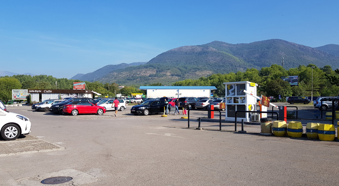 Остановка автобуса, который идет до Будвы, Подгорицы, Котора, Бара, Улциня, та, что ближе к аэровокзалу. До Тивата, Херцег-Нови, Пераста – через дорогу.
