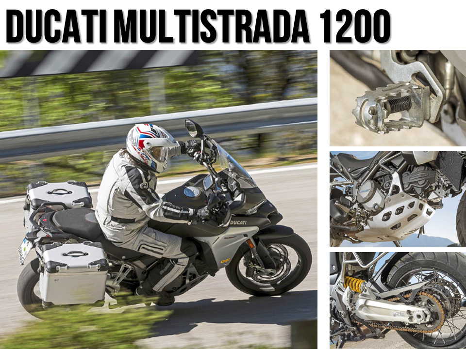 По сравнению с другими мотоциклами семейства Multistrada, Ducati Multistrada 1200 Enduro, представленный еще в прошлом году, однозначно нацелен на более универсальное использование. От базовой модели мотоцикл отличается не много ни мало 266-ю деталями. Обычный двусторонний, а не консольный задний маятник, увеличенные на 3 см хода подвески, увеличенная на 65 миллиметров колесная база, укороченные передачи, спицованные колеса, и — в отличие от коллег от BMW и KTM — большой 30-литровый бак – вот основные отличия от базы. С ценой почти в 23 000 евро это самая дорогая модель в тесте.