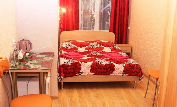 Красная,желтая,зеленая,оранжевая и голубая . Каждая комната рассчитана на 1-2 человек. 3 номера с двуспальной кроватью и 2 номера с двумя отдельными кроватями. Номера не оборудованы санузлами, все удобства расположены вне номеров. На 5 номеров (максимум 10 человек) в гостинице предусмотрено 2 туалета, 2 душа и комната для умывания с тремя раковинами. Есть просторный холл, где расположена мини-кухня. В каждом номере имеется холодильник, стол, два стула, телевизор, шкаф-купе с зеркальными дверцами для одежды и белья. Также есть фен, сейф, электрический чайник и минимальный набор посуды: две чашки, два блюдца, две мелкие и две глубокие тарелки, ложки, ножи, вилки. В общей мини-кухне стоит микроволновая печь. В гостинице принято ходить в тапочках, чтобы не стучать каблуками, не мешать другим гостям, да и чтобы в гостинице всегда было чисто.