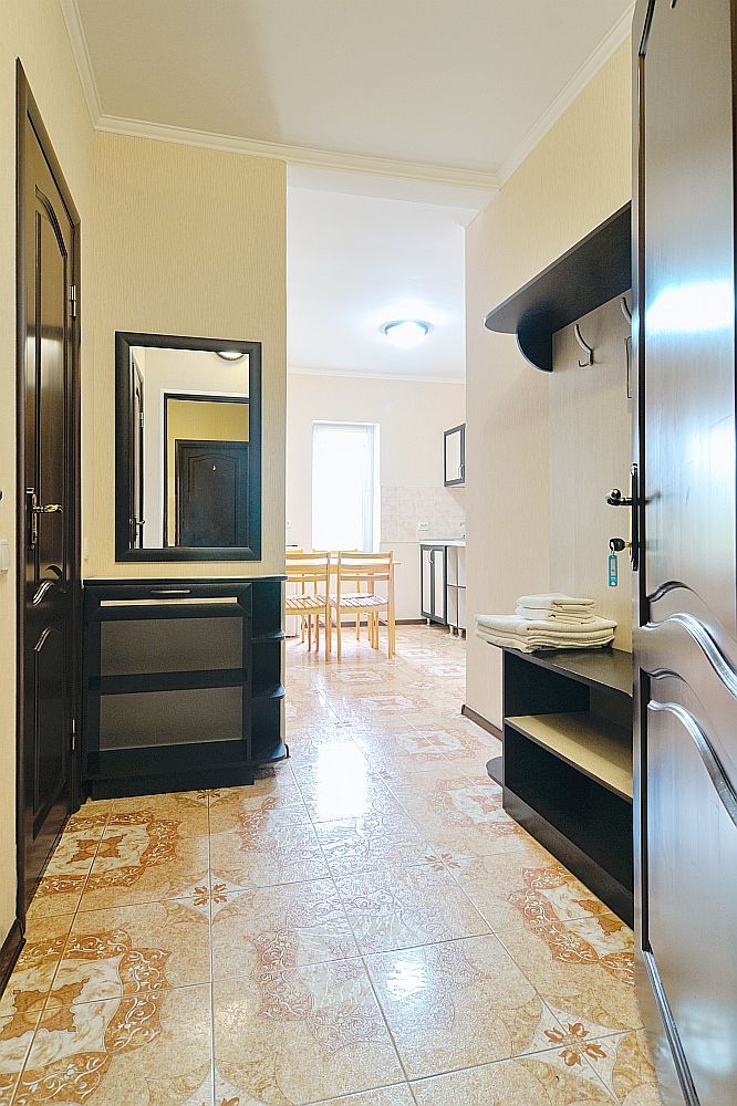 - №4. Тоже подойдет семьям с небольшим бюджетом. Здесь однокомнатные апартаменты, рассчитанные на 4-х человек, оборудованные необходимой меблировкой и бытовой техникой.